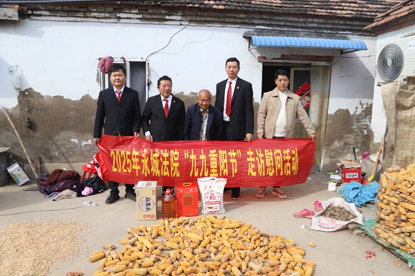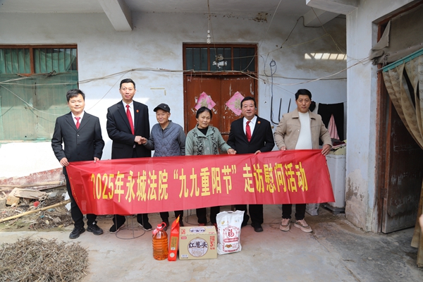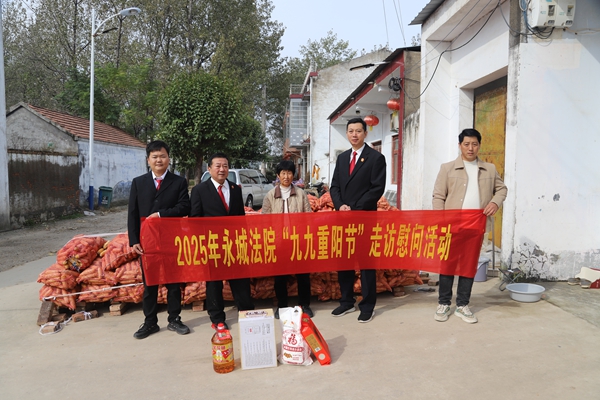 金秋送暖,情满重阳。10月29日,永城法院“驻村第一书记”王峰带领干警到马牧镇西董楼村,开展九九重阳节走访慰问活动,以“送慰问品、干农活” 的务实举措,将司法温暖送到老人身边。
