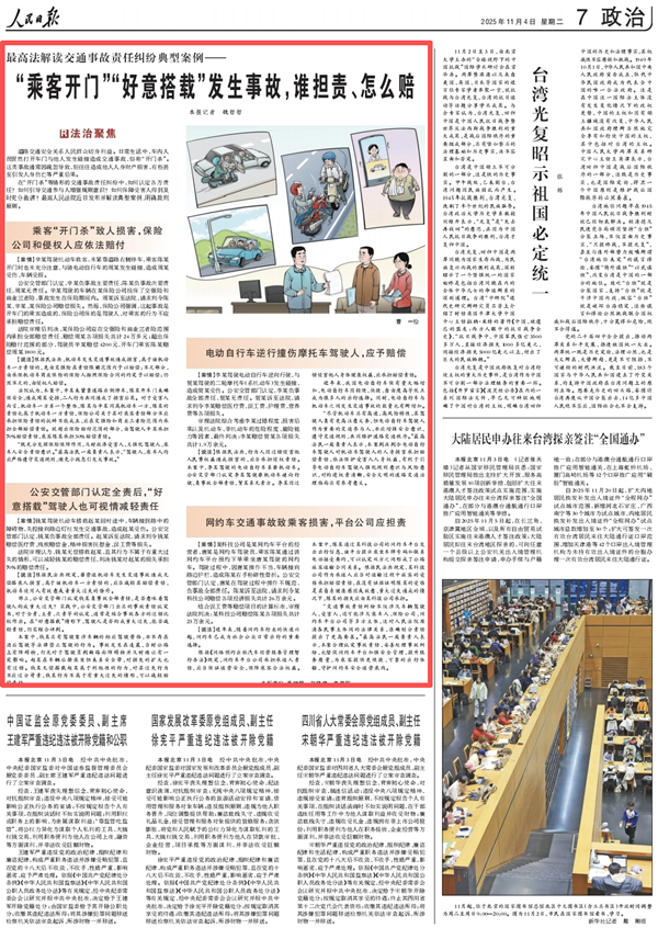 在“开门杀”等情形的交通事故责任纠纷中,如何认定各方责任?如何引导交通参与人增强规则意识?如何保障受害人得到及时充分救济?最高人民法院近日发布并解读典型案例,明确裁判原则。