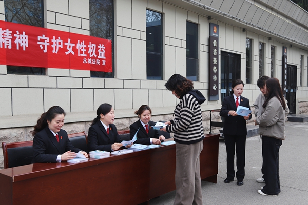 3月5日,在"三八"国际妇女节来临之际,永城法院党组成员、副院长邸玉玲,院妇委会主任任丽及机关服务中心主任李芳一行,走访慰问退休女干警,并开展街头普法宣传,将节日问候与法治春风送到群众身边。