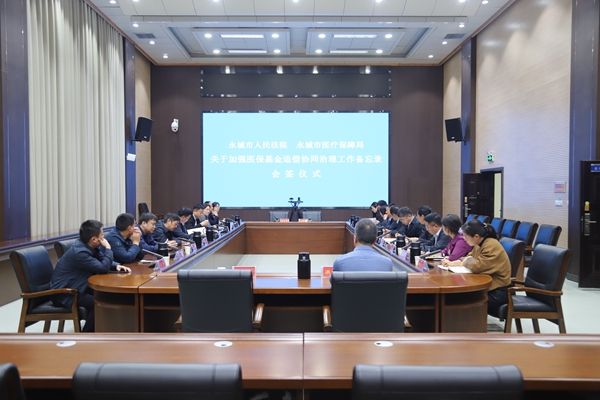 为进一步筑牢医疗保障基金安全防线,畅通医保基金追偿渠道,切实保障参保群众合法权益,永城市人民法院与永城市医疗保障局正式签署《关于加强医保基金追偿协同治理工作备忘录》。市委常委、政法委书记蒋靖山,市法院党组书记、院长闫文超,市医保局党组书记、局长门路出席会议并讲话。市法院和市医保局分管领导、相关业务部门负责人参加。
